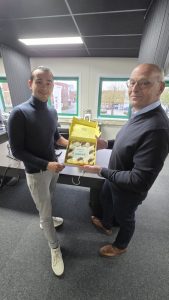 Met trots kondigen we aan dat Univé zich heeft aangesloten als nieuwe partner binnen ons netwerk van verzekeraars. Deze samenwerking versterkt onze gezamenlijke missie om klanten nog beter van dienst te zijn. Nico en Dave van Es vieren dit bijzondere moment met een heerlijke taart van Univé — het startpunt van een mooie samenwerking!